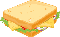 cheese – bread – butter – sausage – juice – bottle – water – sandwich – ham